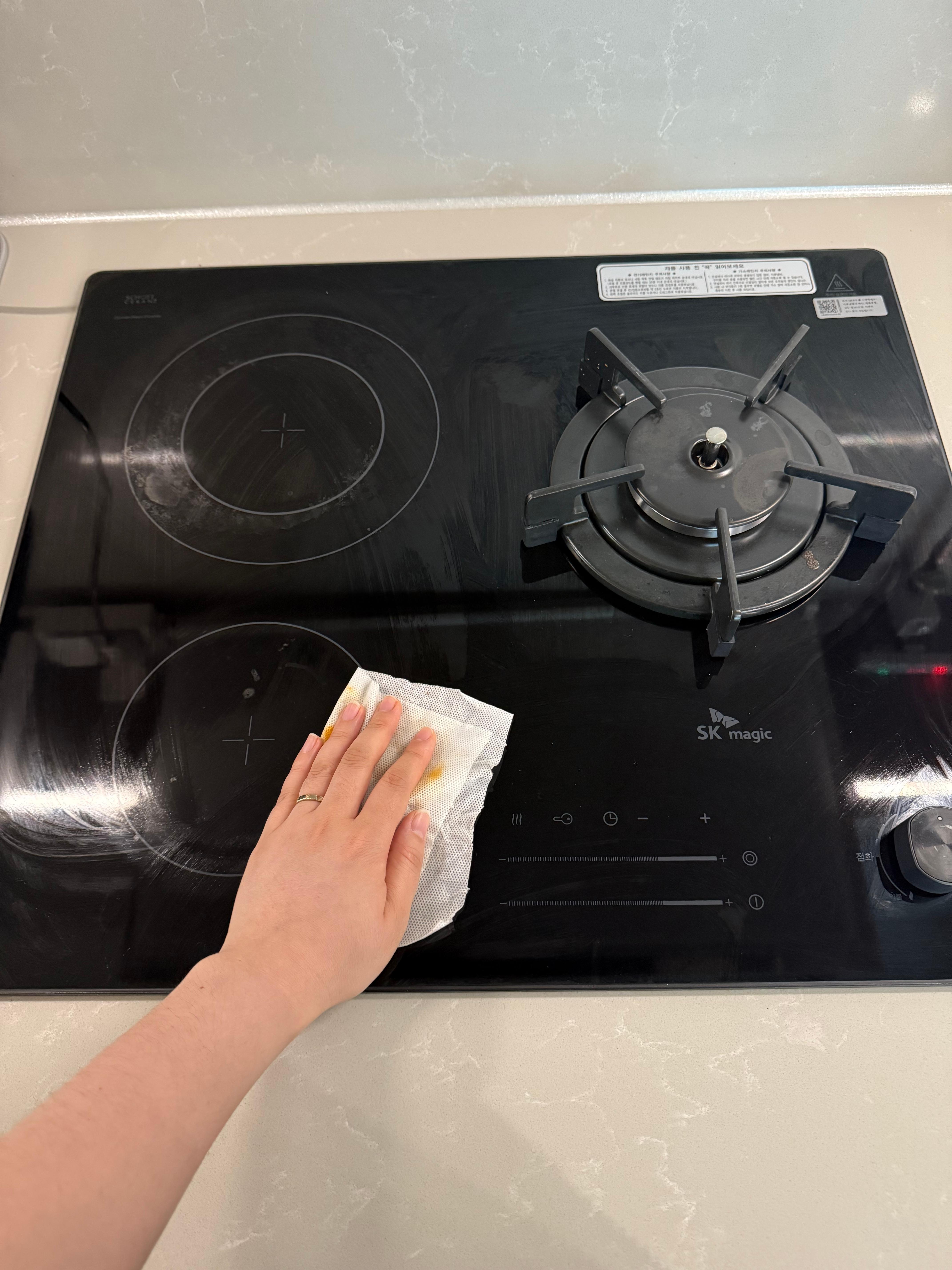 가스레인지 기름때 제거는 청소용티슈가 정답
