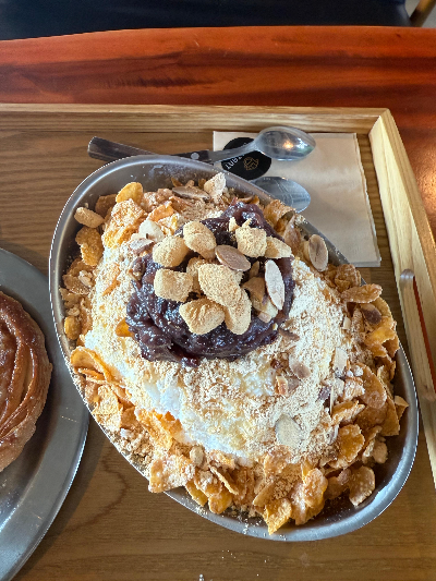 양도 꽤 많아서 두 사람이 나눠 먹기에도 충분했고, 팥빙수를 좋아하는 사람이라면 만족스러울 거예요. 제 입맛에는 조금 달달한 맛이 강하게 느껴졌지만, 팥과 인절미의 조화는 정말 완벽했어요.