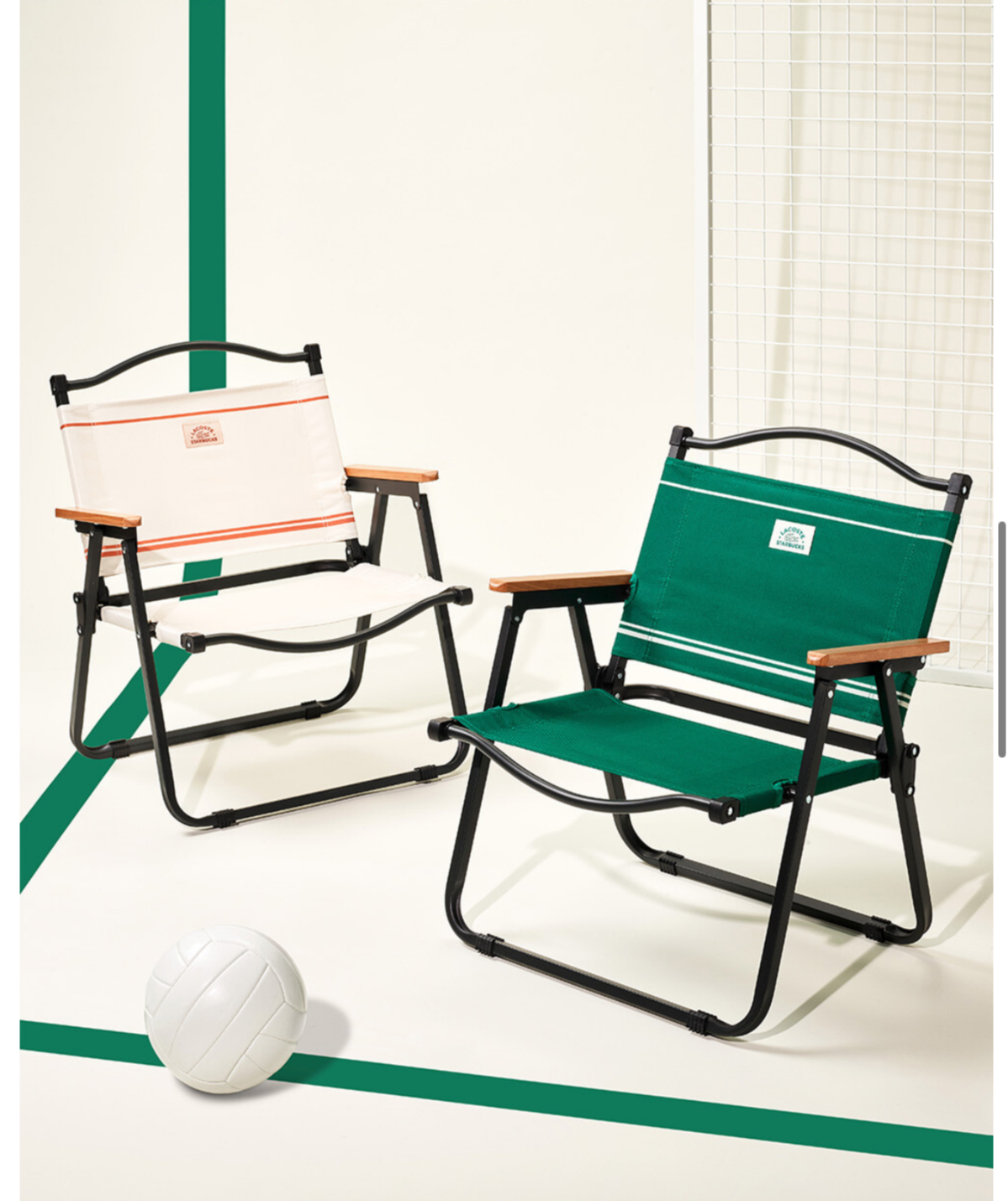 와이드 폴딩 체어 사이드 포켓 (그린 / 아이보리)