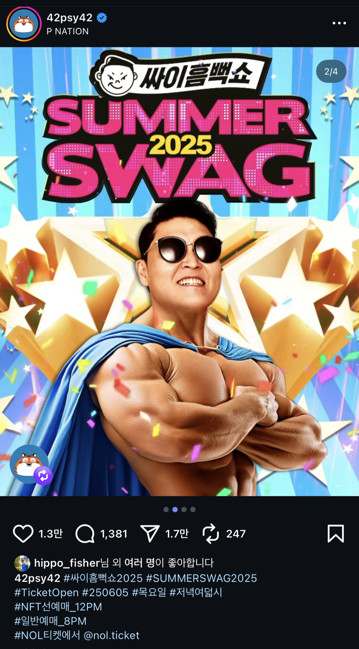 2025년 5월 21일, 싸이의 소속사 피네이션(P NATION)은 공식 SNS를 통해 ‘싸이흠뻑쇼 SUMMERSWAG 2025’의 예매 일정과 공식 포스터를 공개했습니다.
